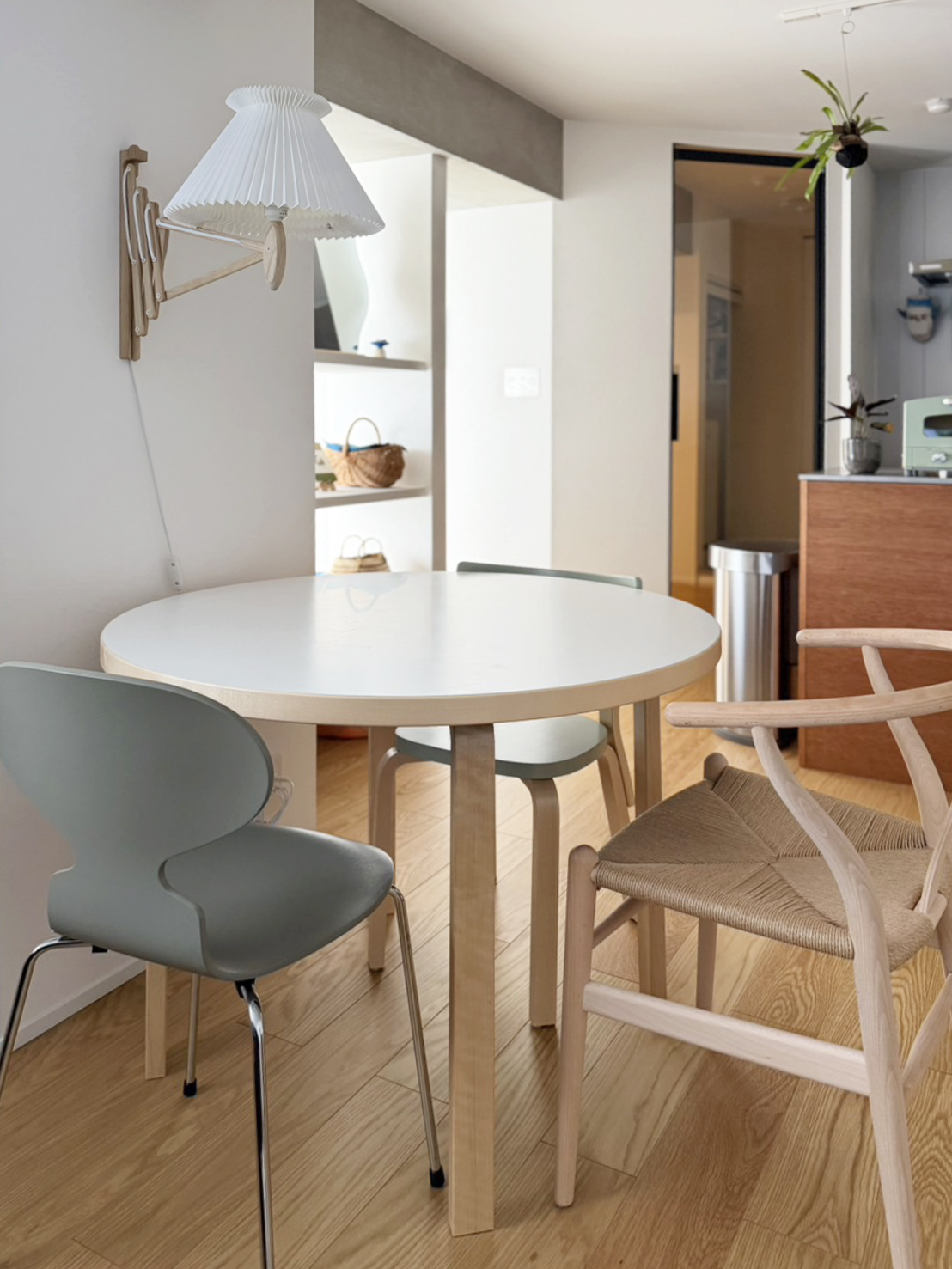 ダイニングのチェアや家電、植物、食器やランタンなど、見渡すと緑がたくさん・・・確かに!
