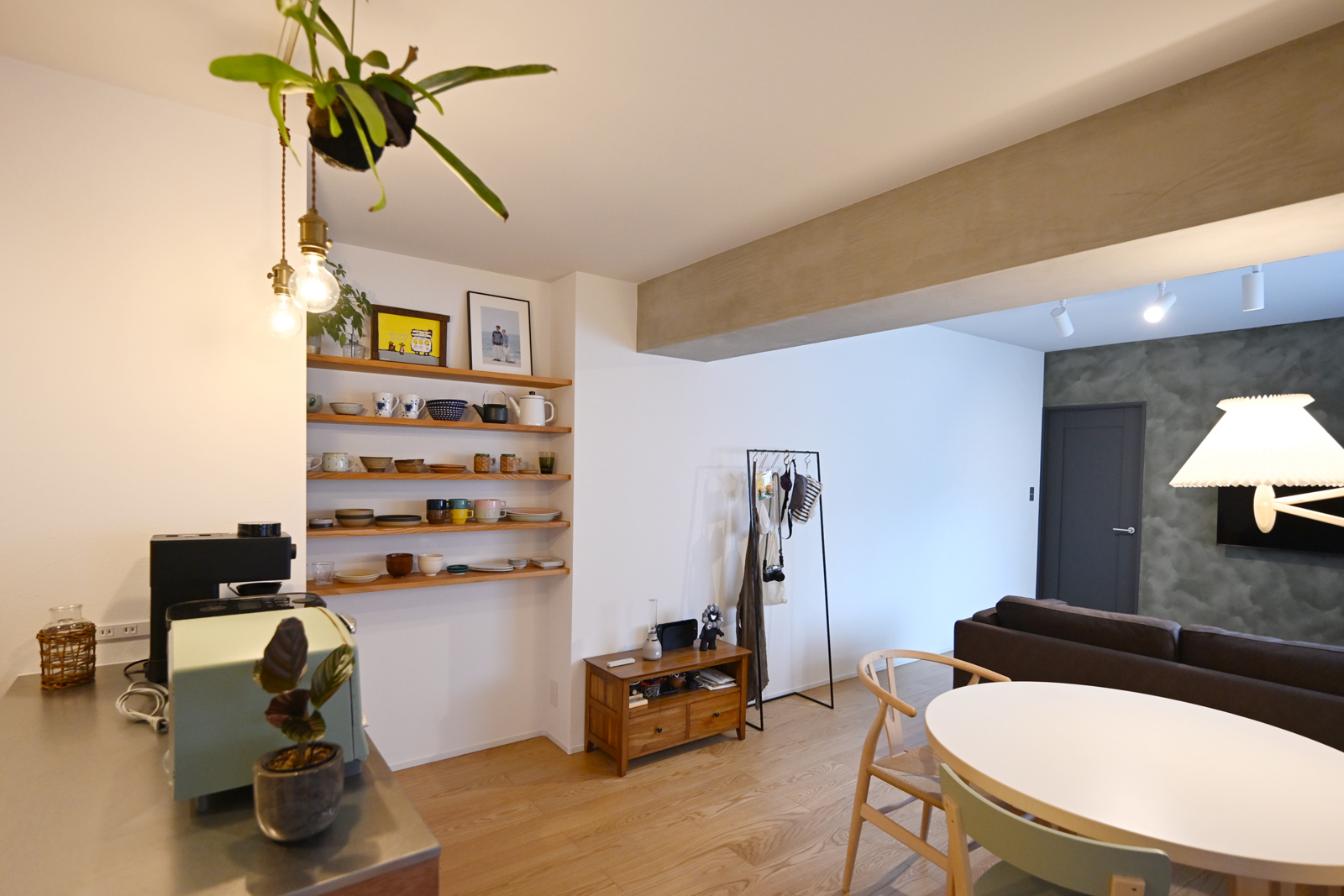 部屋のイメージは無機質と有機的な素材を組み合わせたミックススタイル。