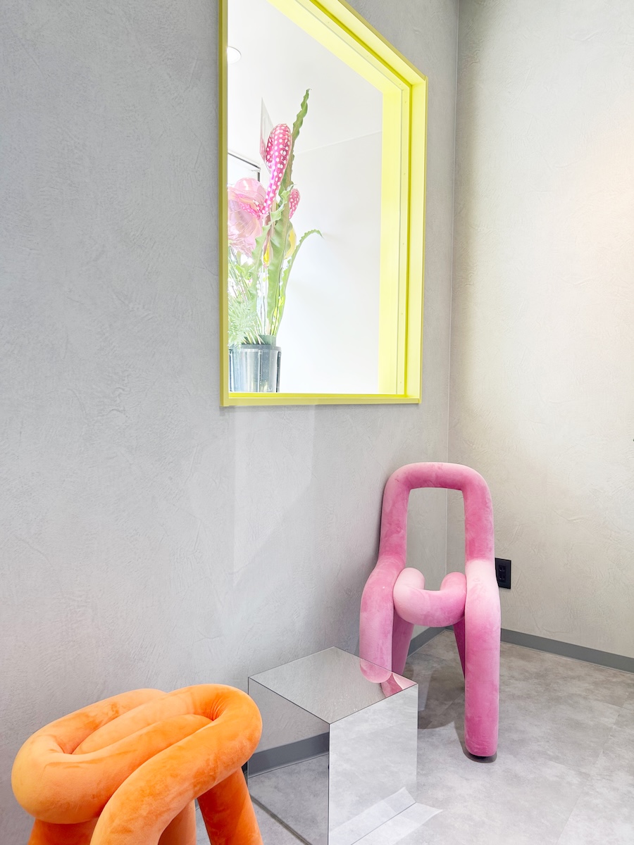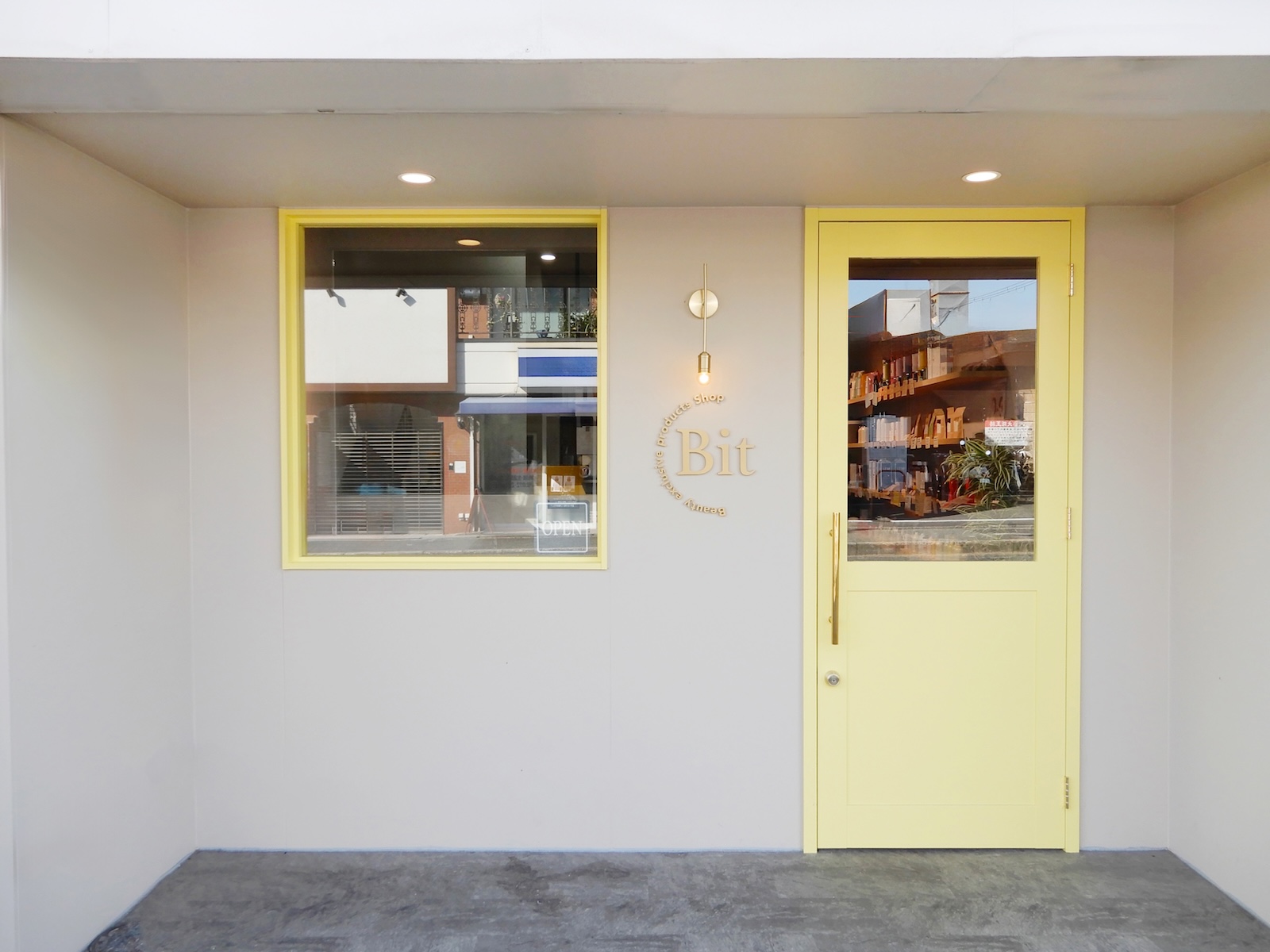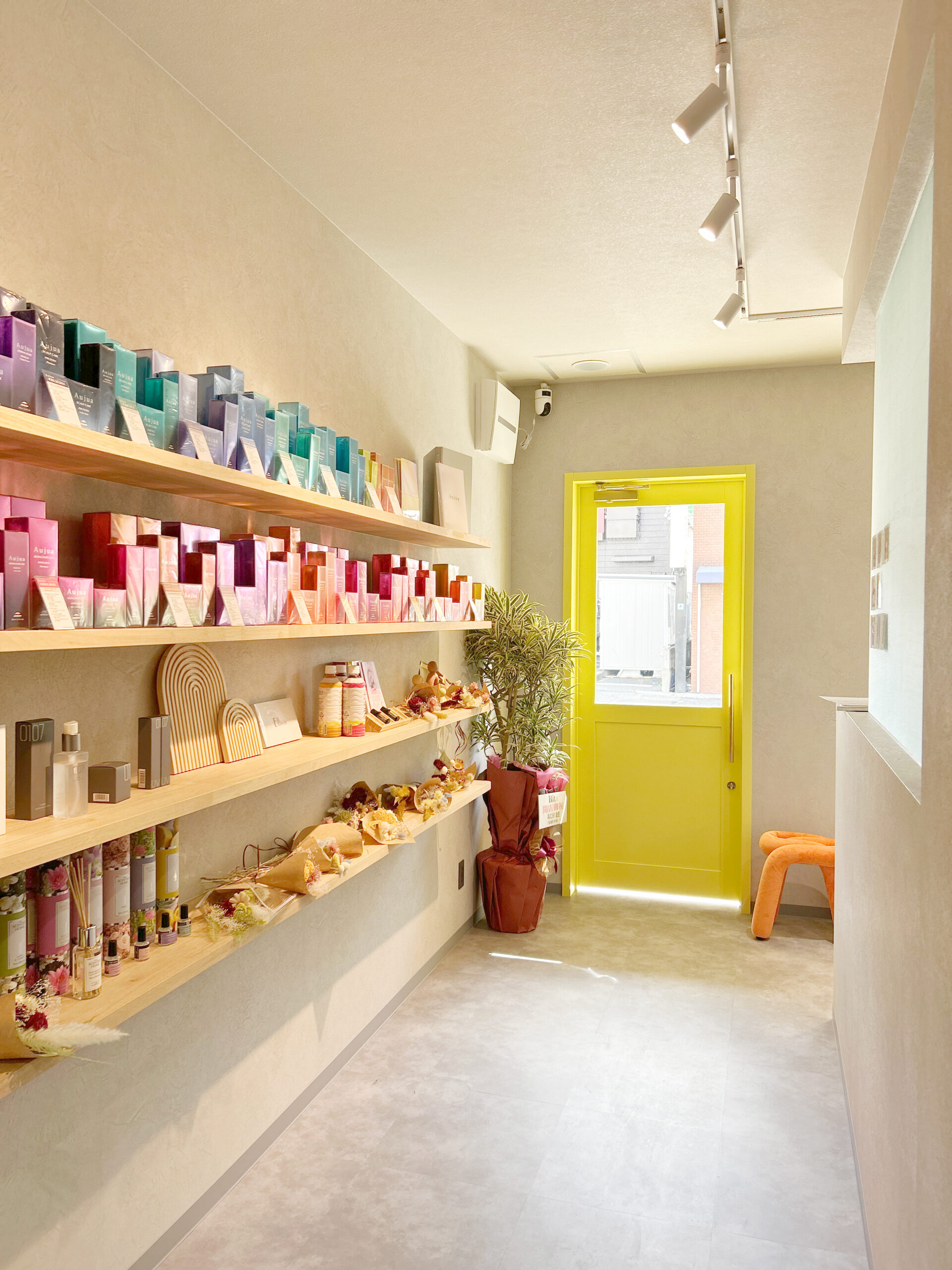 「多くの方に綺麗を届けたい」そんな施主様の想いから実現したお店で、ビタミンイエローのドアがシンボルになっています。